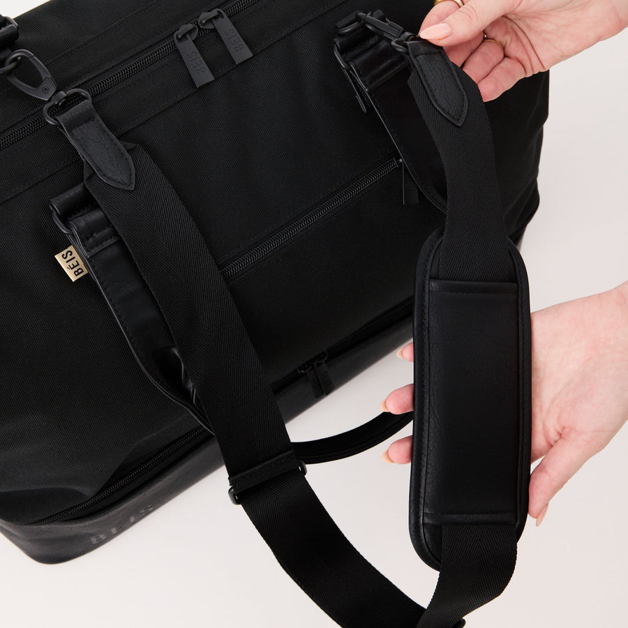 We designed this bag to take the hassle out of packing for the weekend or whichever days you’re away. Seriously, this tote’s easy-access opening makes getting everything in and out a breeze (no flashlight required). Plus, the bottom compartment is designed to keep your shoes, toiletries and travel essentials separate—you can even stash a hair dryer in there. Bonus points: there’s a zipper-pocket on the back that becomes a trolley sleeve so it fits over your luggage handle. Say Hello to your new favorite Carry-On Travel Bag.