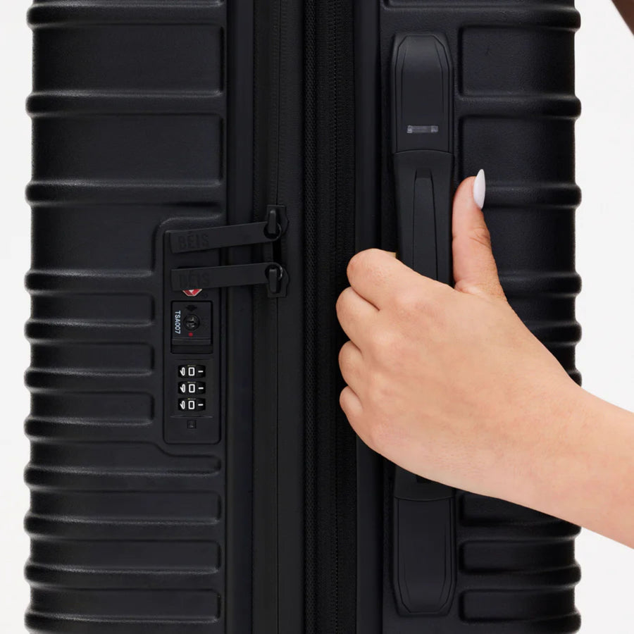 Crafted with a durable hard-shell exterior, smooth-rolling 360* wheels, and a cushioned silicone trolley handle, this bag is easy to love and even easier to use. Just ask the thousands of 5-star reviews — our award-winning Roller is known and trusted for its sleek design, innovative organization & compression technology, and the 2” of expandable space that always seems to come in handy. Time for a sigh of relief… you’ve found the Roller you’ve been looking for. BÉIS Limited Lifetime Luggage Warranty included.