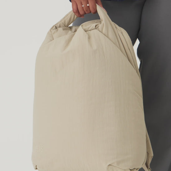 The Air Backpack embodies this collection’s signature mix of street-inspired style and travel-ready function. Its Airy, puffy build and thoughtful pockets keep life organized, while a laptop sleeve, trolley pass-through, and UV reflective details make commuting and jet-setting a breeze.