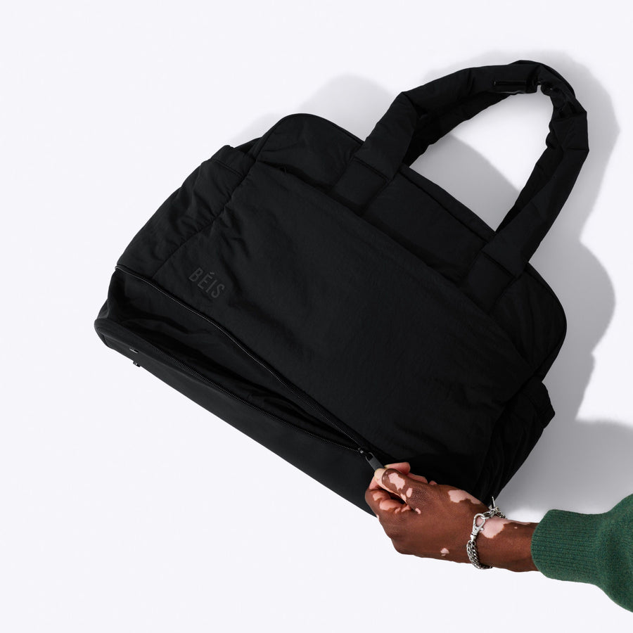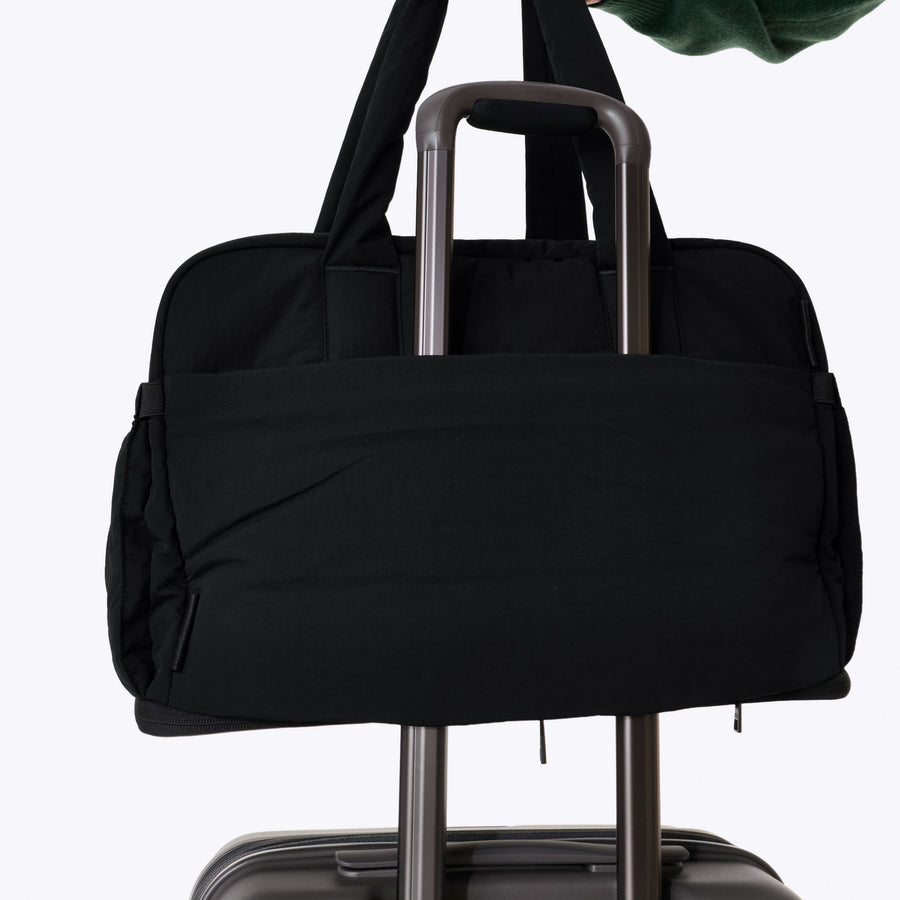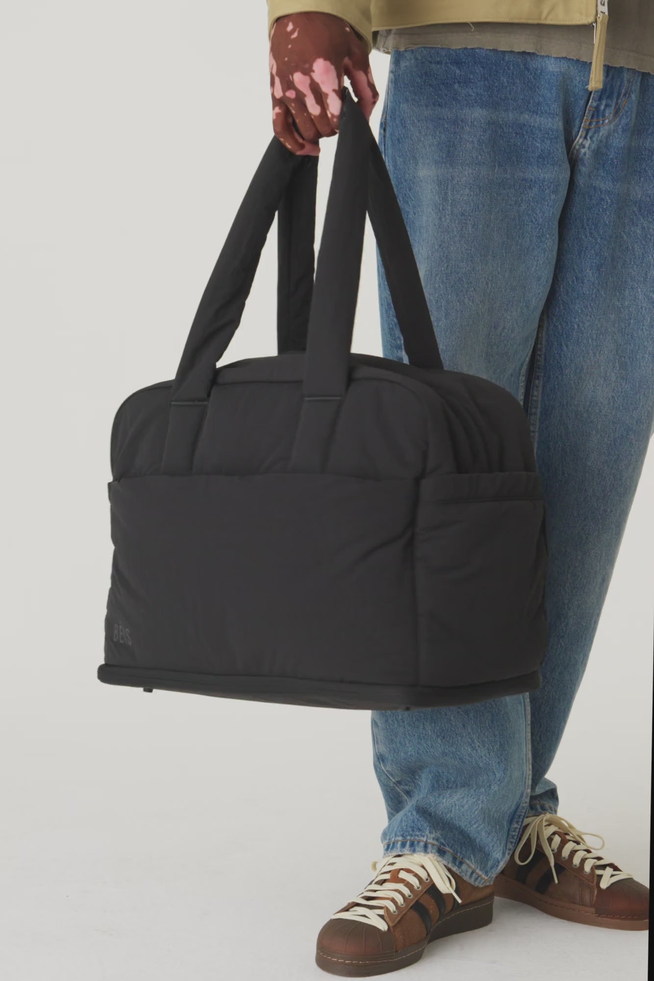 The Air Duffle, your grab-and-go essential for weekend getaways, gym sessions, or last-minute takeoffs. Crafted in soft puffy nylon with a naturally wrinkled matte finish, this duffle transitions seamlessly from crossbody to sling bag—however you want to carry it. The expansion zipper adds extra room when you inevitably overpack (we support it), and metal feet let you set it down anywhere without regret. Built for stylish convenience on the move.