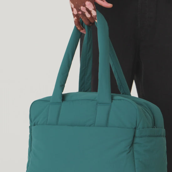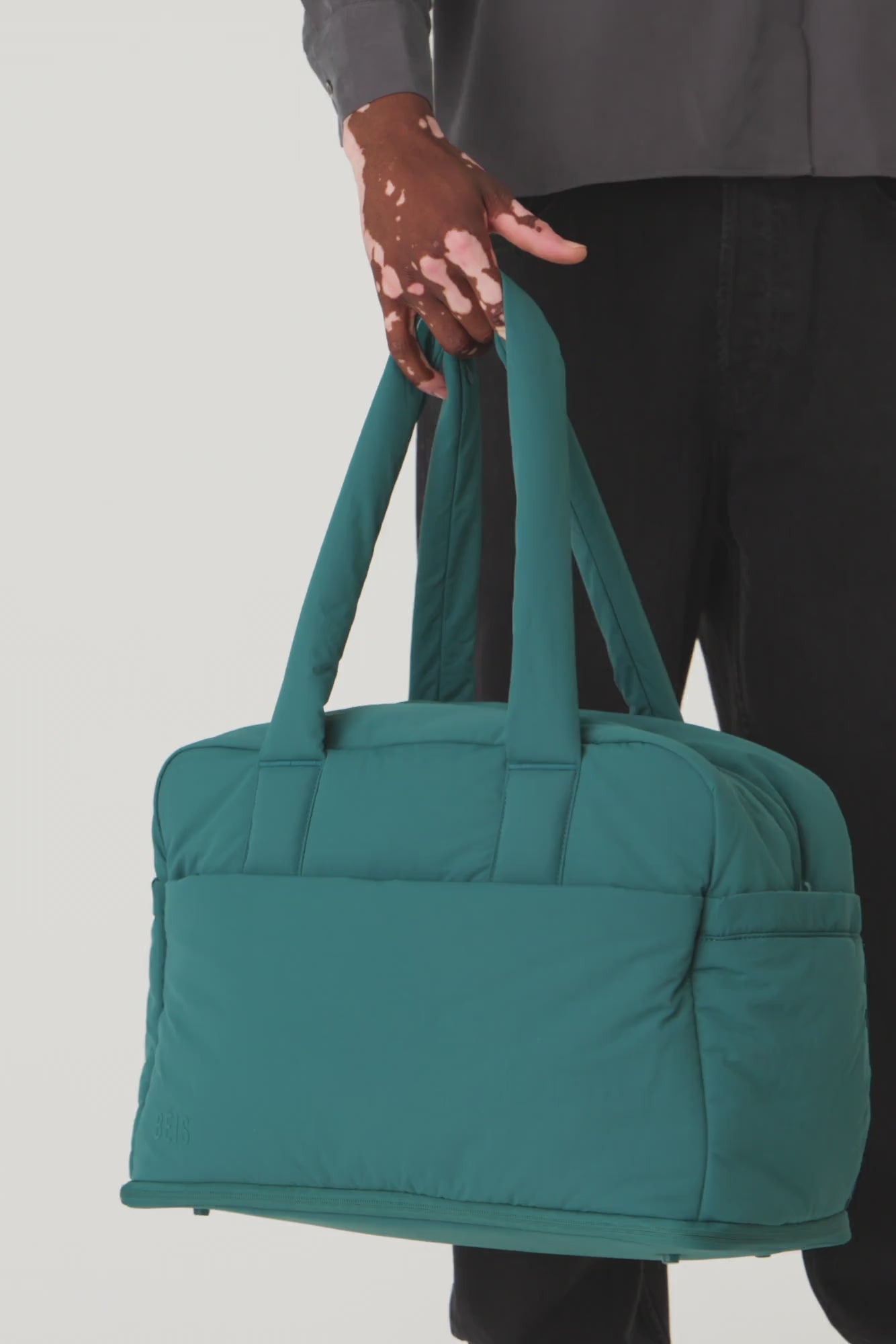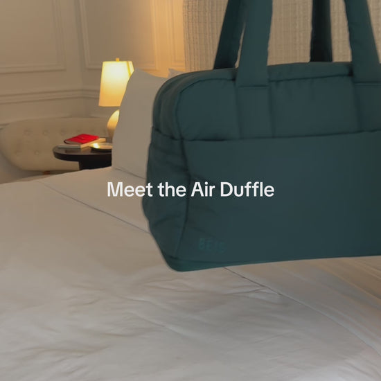 The Air Duffle, your grab-and-go essential for weekend getaways, gym sessions, or last-minute takeoffs. Crafted in soft puffy nylon with a naturally wrinkled matte finish, this duffle transitions seamlessly from crossbody to sling bag—however you want to carry it. The expansion zipper adds extra room when you inevitably overpack (we support it), and metal feet let you set it down anywhere without regret. Built for stylish convenience on the move.