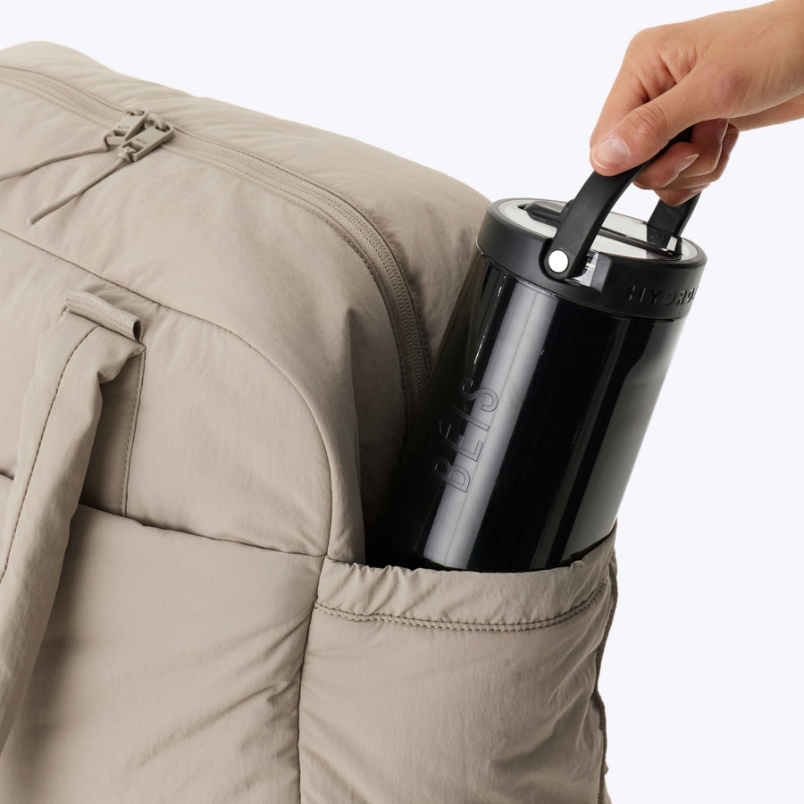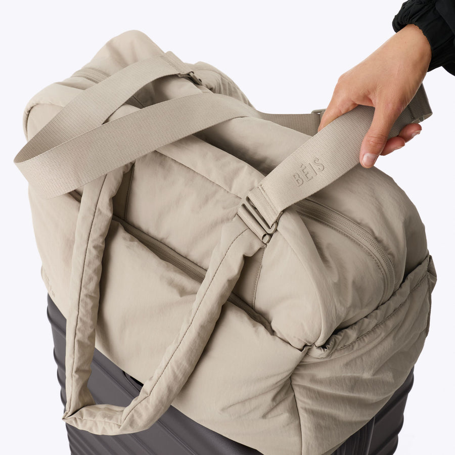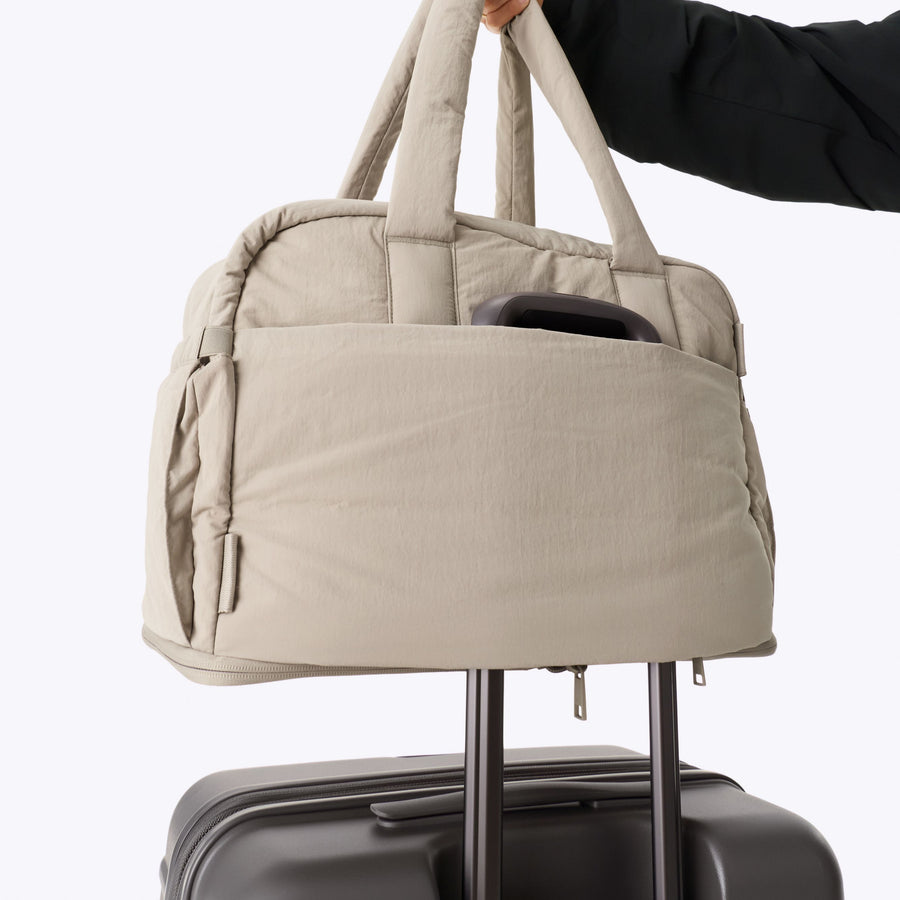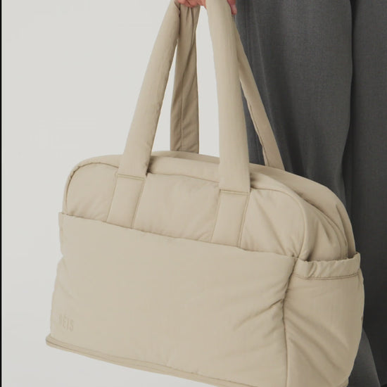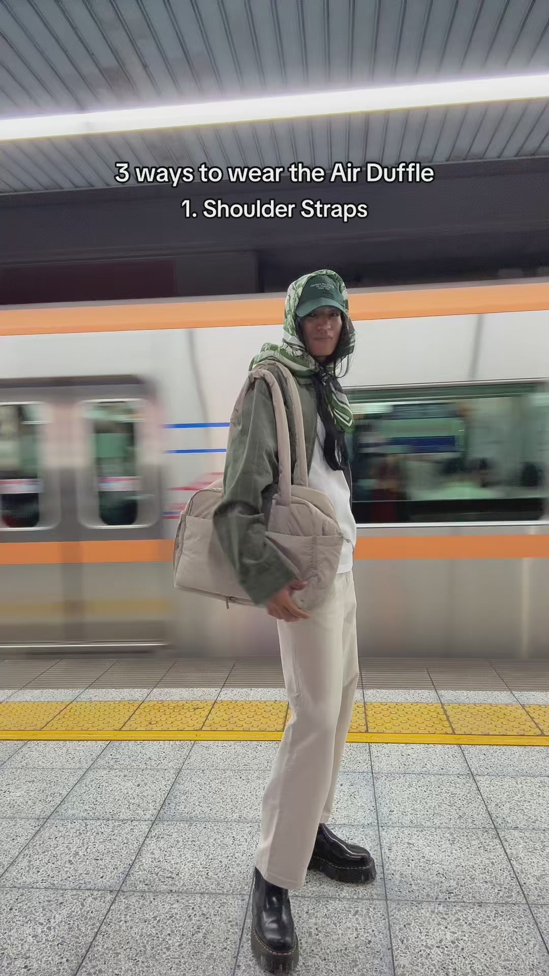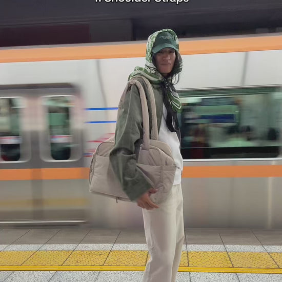 The Air Duffle, your grab-and-go essential for weekend getaways, gym sessions, or last-minute takeoffs. Crafted in soft puffy nylon with a naturally wrinkled matte finish, this duffle transitions seamlessly from crossbody to sling bag—however you want to carry it. The expansion zipper adds extra room when you inevitably overpack (we support it), and metal feet let you set it down anywhere without regret. Built for stylish convenience on the move.