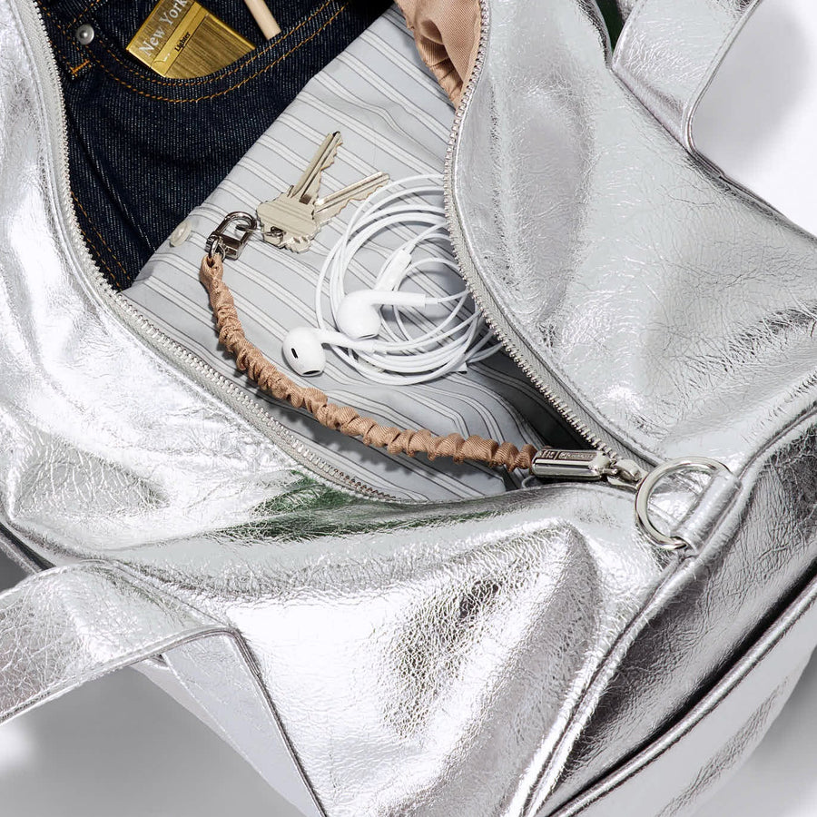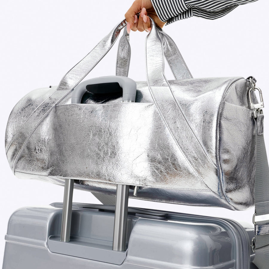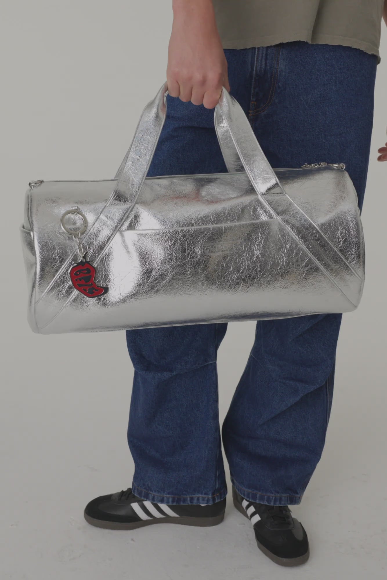 This burrito-shaped duffle (or duffle-shaped burrito…sorry, getting hungry) in crinkled silver foil wraps up your essentials more snugly than a tortilla ever could. Complete with a co-branded burrito zipper puller and removable chili pepper charm, adjustable shoulder strap with faux leather details, key leash, and trolley sleeve, it’s the roomy, stylish duffle that keeps up with every to-go mission and your “I think I have room for more” moments.