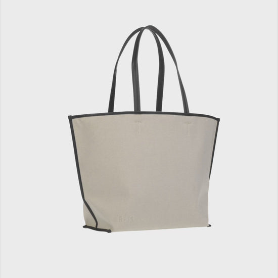 The Canvas and Leather Tote  in Black
