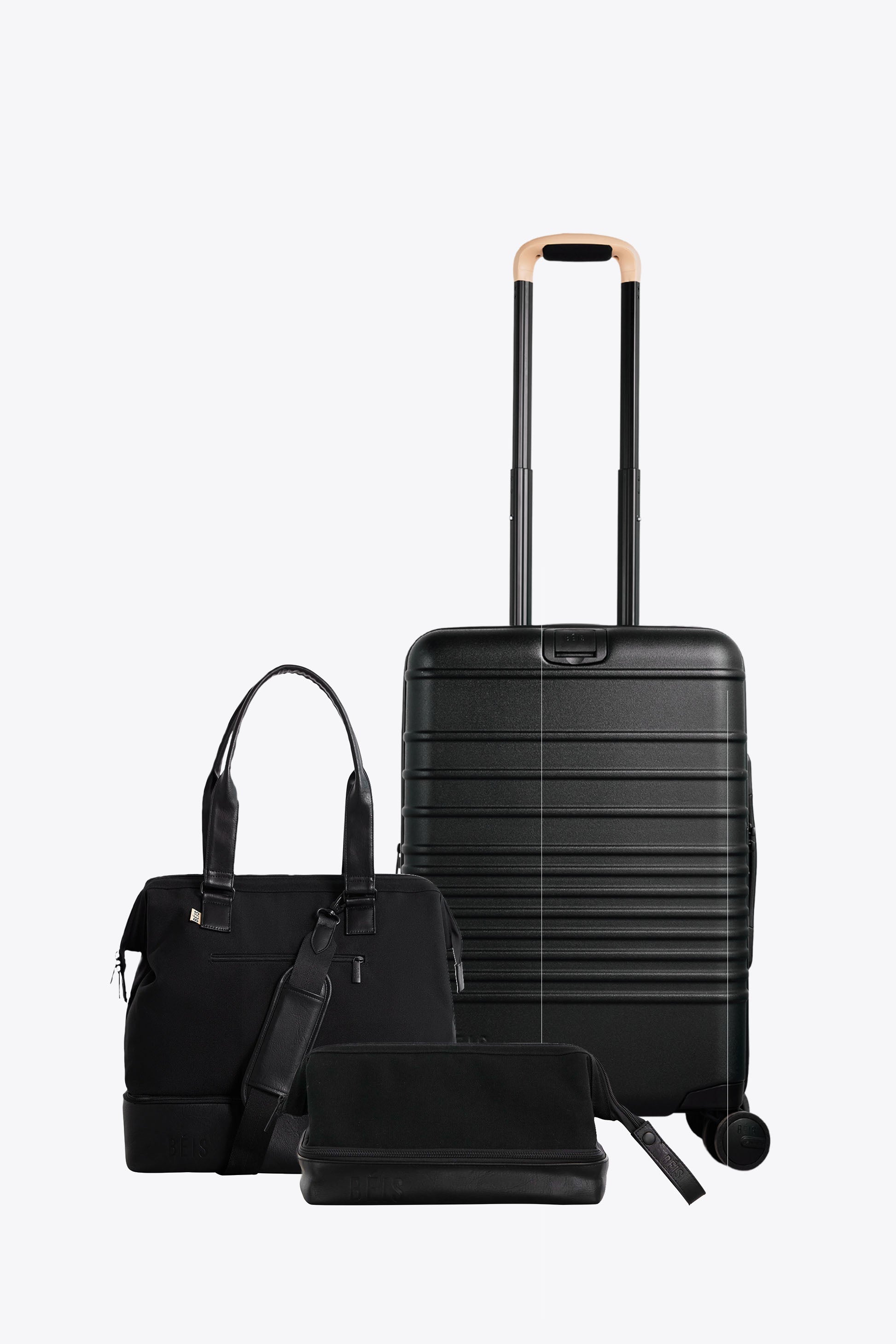 Everything you need for streamlined travel, all in one perfectly packed system. The Carry-On Essentials Set combines our best-selling Carry-On Roller, the Mini Weekender, and the Dopp Kit—three essentials designed to work together for shorter trips and carry-on-only travel.