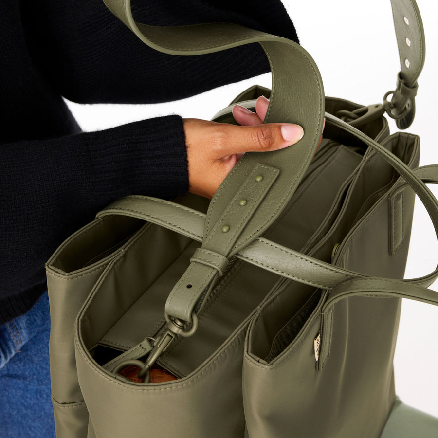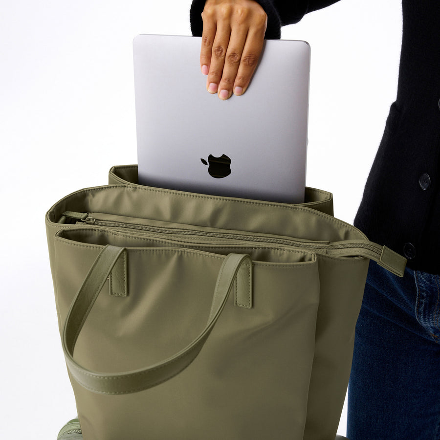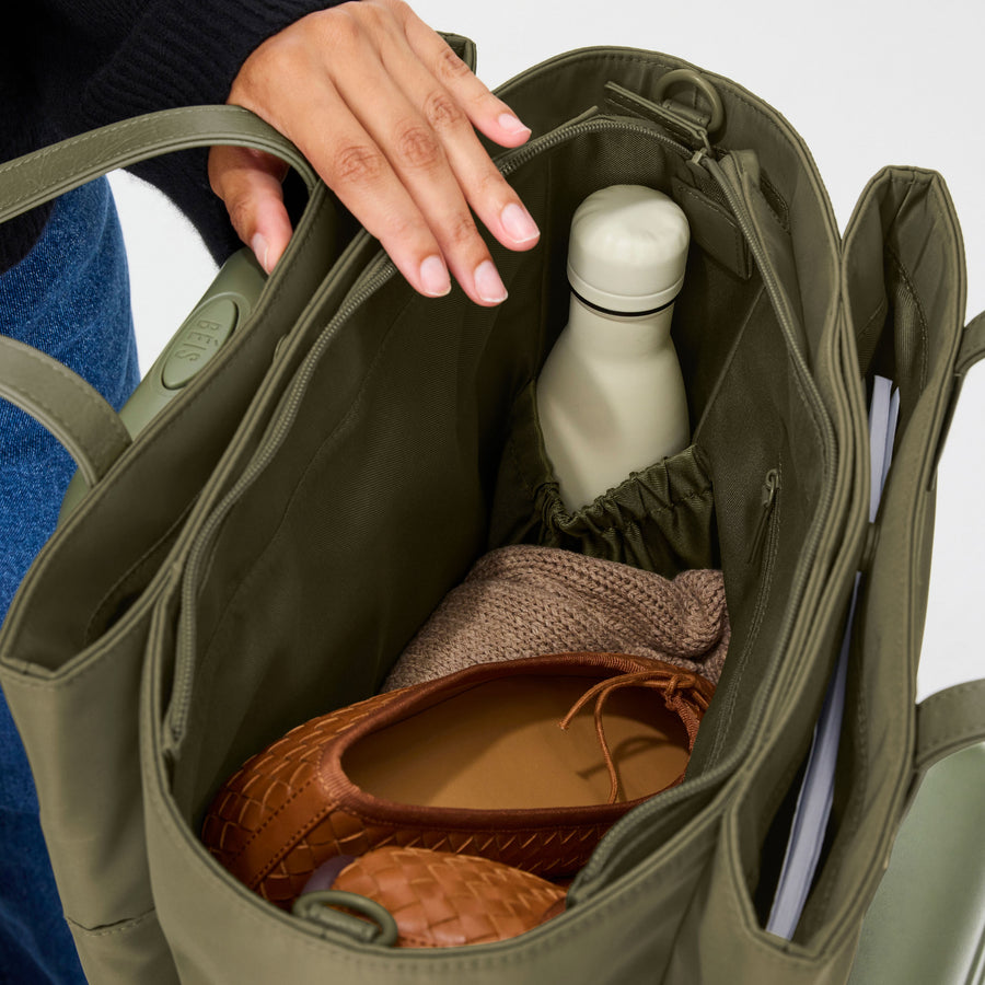 Made with our new, sleek nylon and classic vegan leather, this is the perfect everyday tote for your commute and beyond. It combines travel-focused details like metal feet and a trolley pass-through with versatile features (we love being able to adjust and remove the additional strap), and — of course — a key leash. Slip your phone in the hidden cell pocket, snap close the magnetic compartments for extra security, and queue your commute playlist. A tote that combines minimal style with maximum function? All aboard.