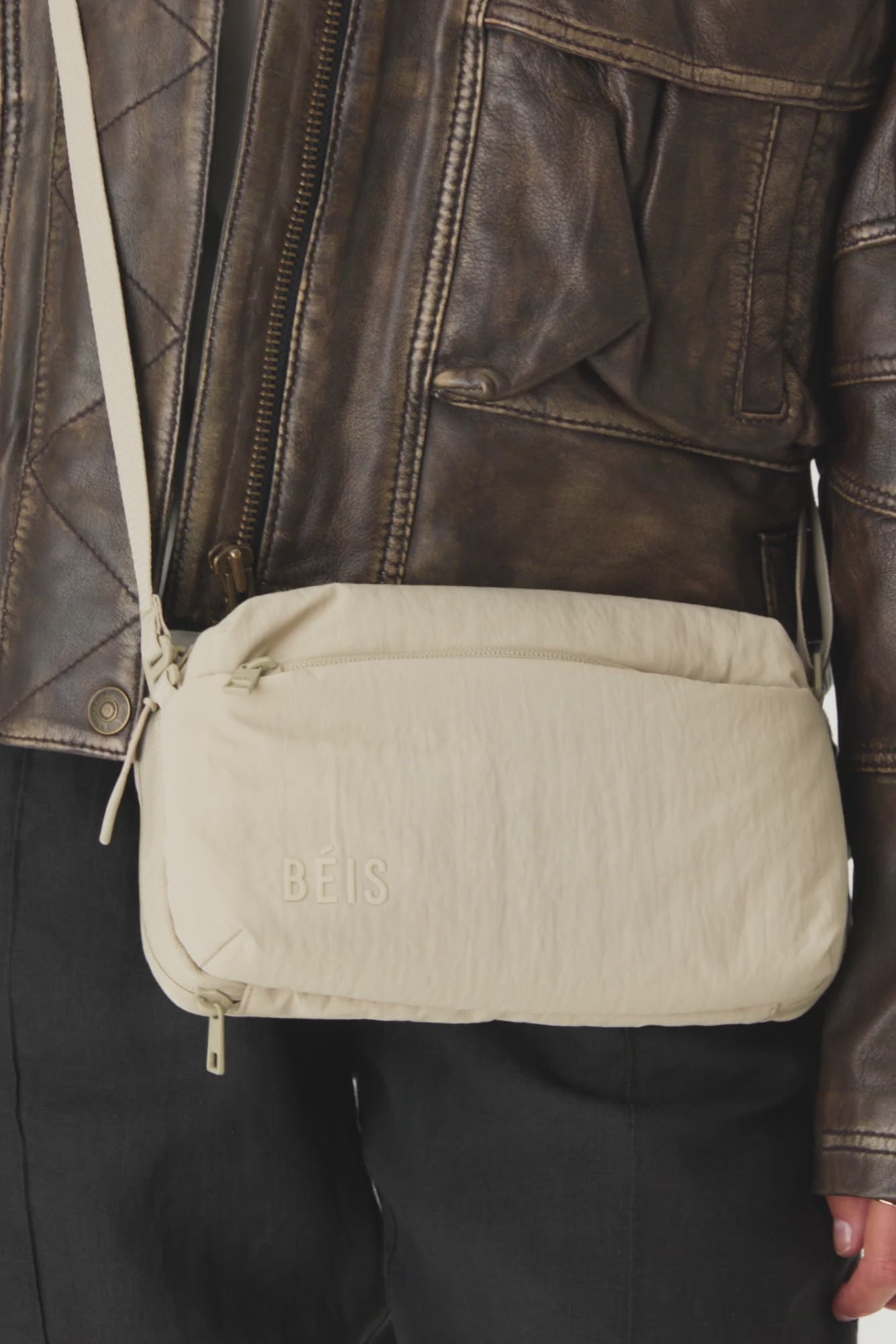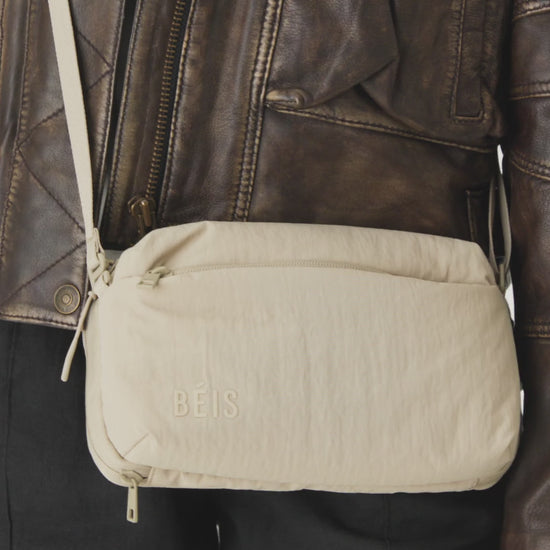 Start with the bag as a sleek crossbody with an adjustable strap.