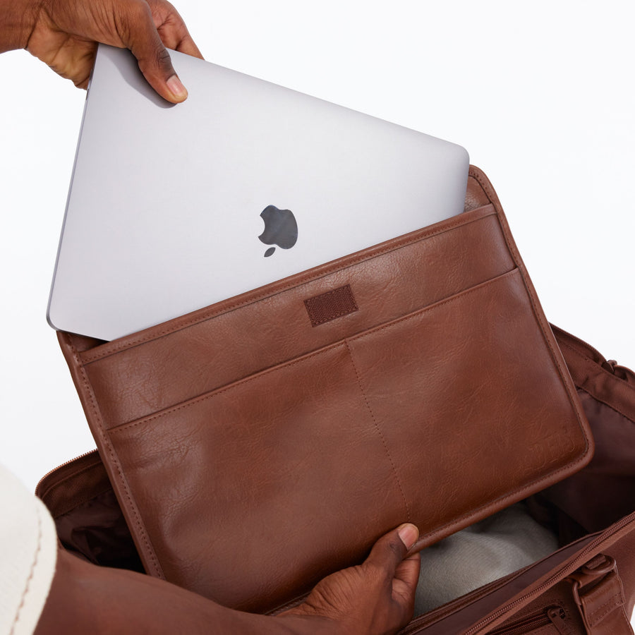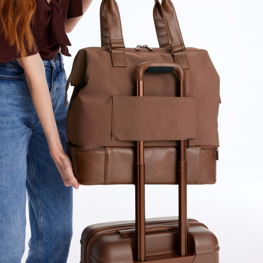 Taking inspiration from our OG weekender, we designed this brand new convertible weekender to take you even further! Features a fully removable bottom compartment that doubles as a packing cube, with a mesh zip-cover. Voila! Now your weekender becomes a compact daytime excursion bag. Wait, not done yet - also includes a removable padded laptop sleeve with exterior pockets, to save you from that awkward moment when you hold up the security line. Easy-access opening makes getting everything in and out a breeze (no flashlight required). Hello, versatility!
