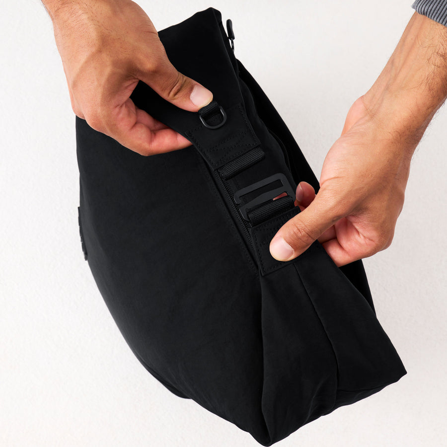 A go-everywhere, do-everything bag for the multitasker who lives life in motion. Wear it two ways: extend the strap to hold maximum gear, or cinch it up for the perfect shoulder companion. Made of an easy-to-clean, water-repellent material and featuring a dedicated bottle holder, this work-hard, play-hard gym partner seamlessly transitions from hot and sweaty to happy-hour ready.