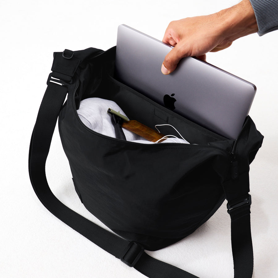 A go-everywhere, do-everything bag for the multitasker who lives life in motion. Wear it two ways: extend the strap to hold maximum gear, or cinch it up for the perfect shoulder companion. Made of an easy-to-clean, water-repellent material and featuring a dedicated bottle holder, this work-hard, play-hard gym partner seamlessly transitions from hot and sweaty to happy-hour ready.