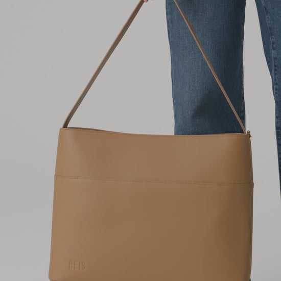 Handbag-first energy with parent-level function tucked inside, this one moves effortlessly from work to daycare to dinner without ever needing a costume change. Crafted in chic vegan leather with a polished silhouette, it looks like the bag you’d buy even if baby life wasn’t part of the plan. Inside, there’s an insulated pocket for bottles, easy-access pockets for wipes (and lip gloss), and organization that keeps work and baby essentials from colliding. Stroller straps clip on when you need them, disappear when you don’t, and a wipeable changing pad with a zip pocket keeps quick changes actually quick. And yes—it still holds a 32oz tumbler like a pro.