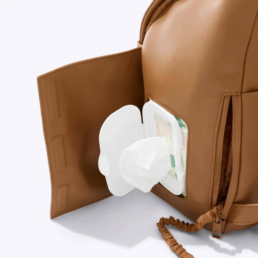 The Everyday Diaper Backpack  in Camel Vegan Leather