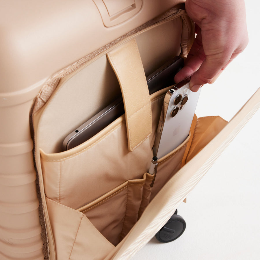 Gone are the days of unzipping your entire suitcase in front of everyone at the gate. Lighten your load and make airport security a breeze: this roller takes organized travel to the next level with easy, protected front pocket access to all the things you’d usually have to lug around in another bag. Still featuring all the elements you love about The Carry-On Roller (a durable hard shell, 360* wheels, multiple handles, plus TSA locks and a weight limit indicator), now in a compact size with heightened compartment function.