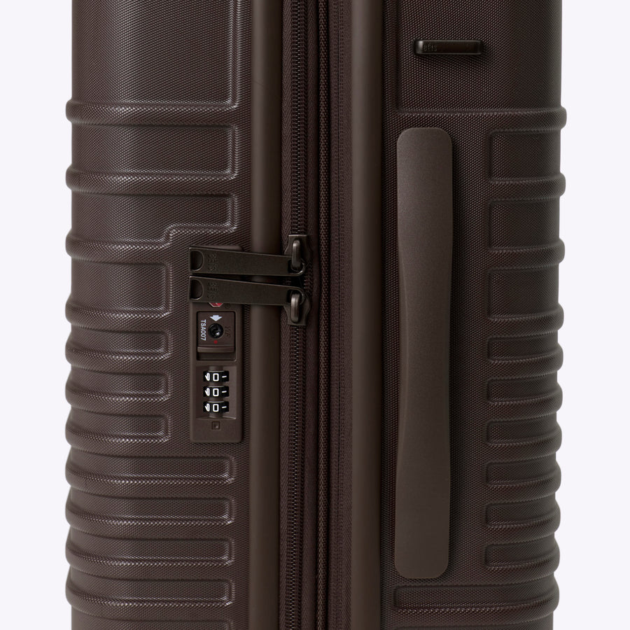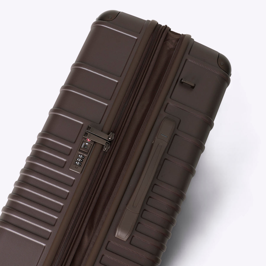 Finished with aluminum corner guards, a subtly textured exterior, and refined hardware, it’s built to handle the journey while keeping things looking polished.
