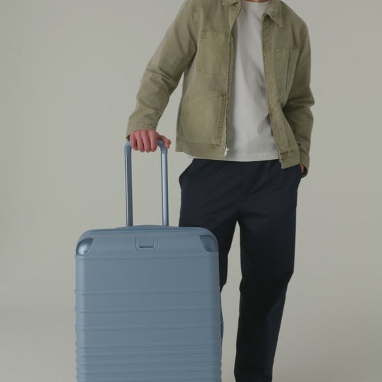 The built-in weight indicator signals when you hit 50 lbs—because surprise fees at check-in are nobody’s idea of a good time. Sized between our Medium and Large Check-In, it’s the in-between that somehow fits everything.