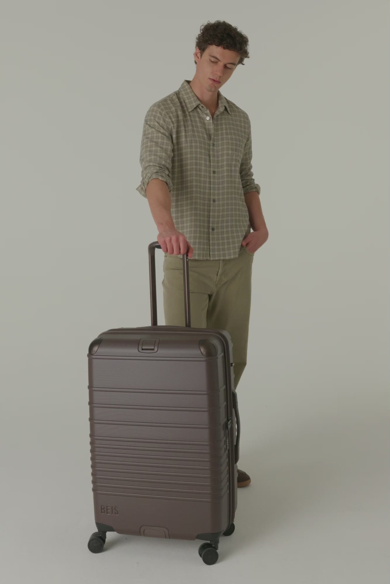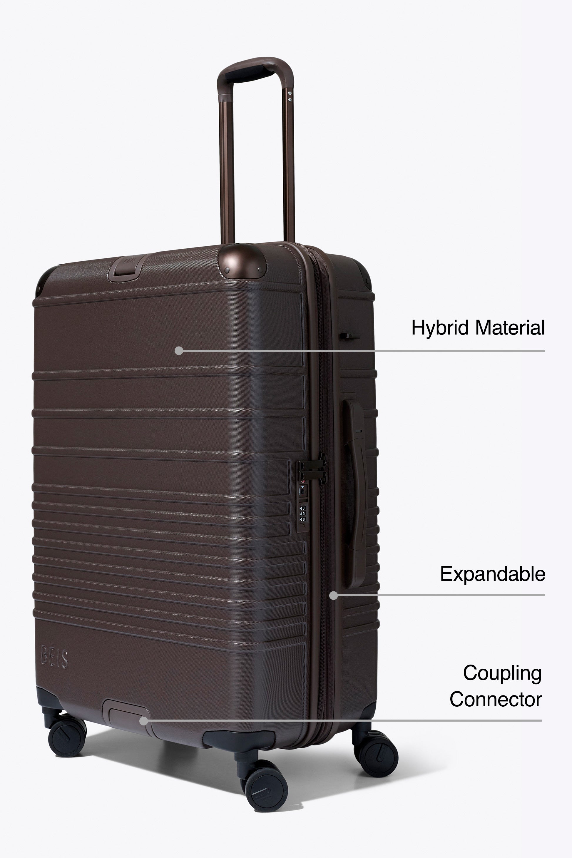 At the center of its design is the BÉIS Coupling System (patent pending)—a built-in connection that links any combination of Hybrid rollers into a single, secure rolling unit. Roll your carry-on and check-in together with one hand, through every terminal, without breaking a sweat (or a nail).
