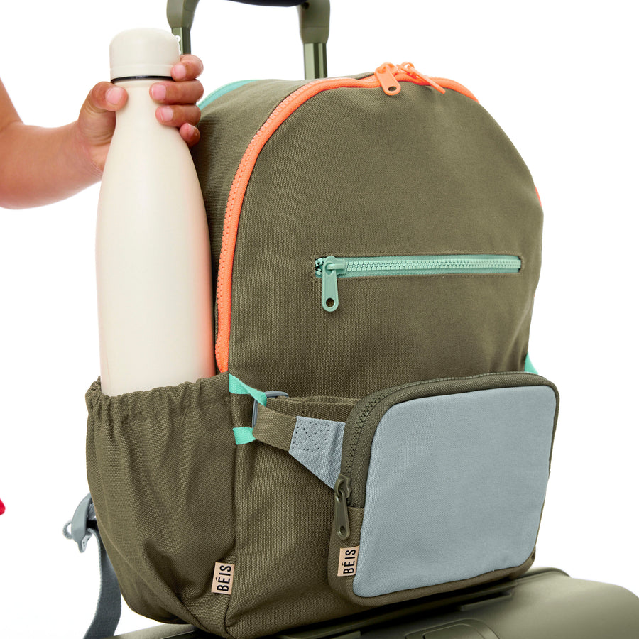 This kids backpack is made to play! Packed with a water bottle holder, trolley sleeve, and a large compartment for them to fit their beloved stuffed animal (or a change of clothes for that inevitable mess). Oh, and did we mention the removable fanny pack on the front? Yup, this 2-in-1 kids travel backpack is fun for them, but looks good when they make you wear it, too. Parent Pro Tip: The safety whistle on the strap + name tag on the inside help you keep track of both them and their belongings!