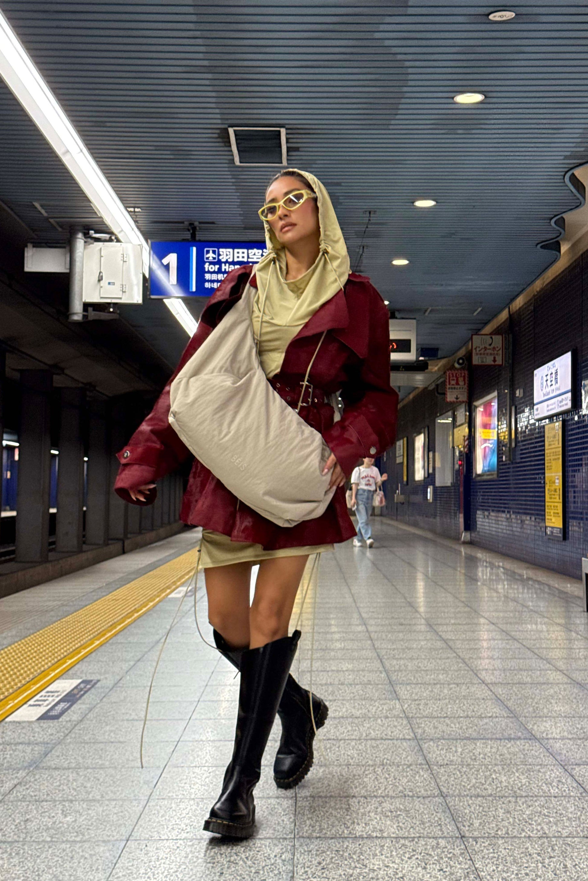 The Oversized Crescent Catchall blends form-fitting comfort with everything-fitting capacity. This roomy crescent-shaped crossbody is crafted in soft puffy nylon with an unstructured silhouette that adapts to your body while holding all your essentials. The adjustable strap lets you wear it as a relaxed crossbody or cinched up over the shoulder—however your day demands.