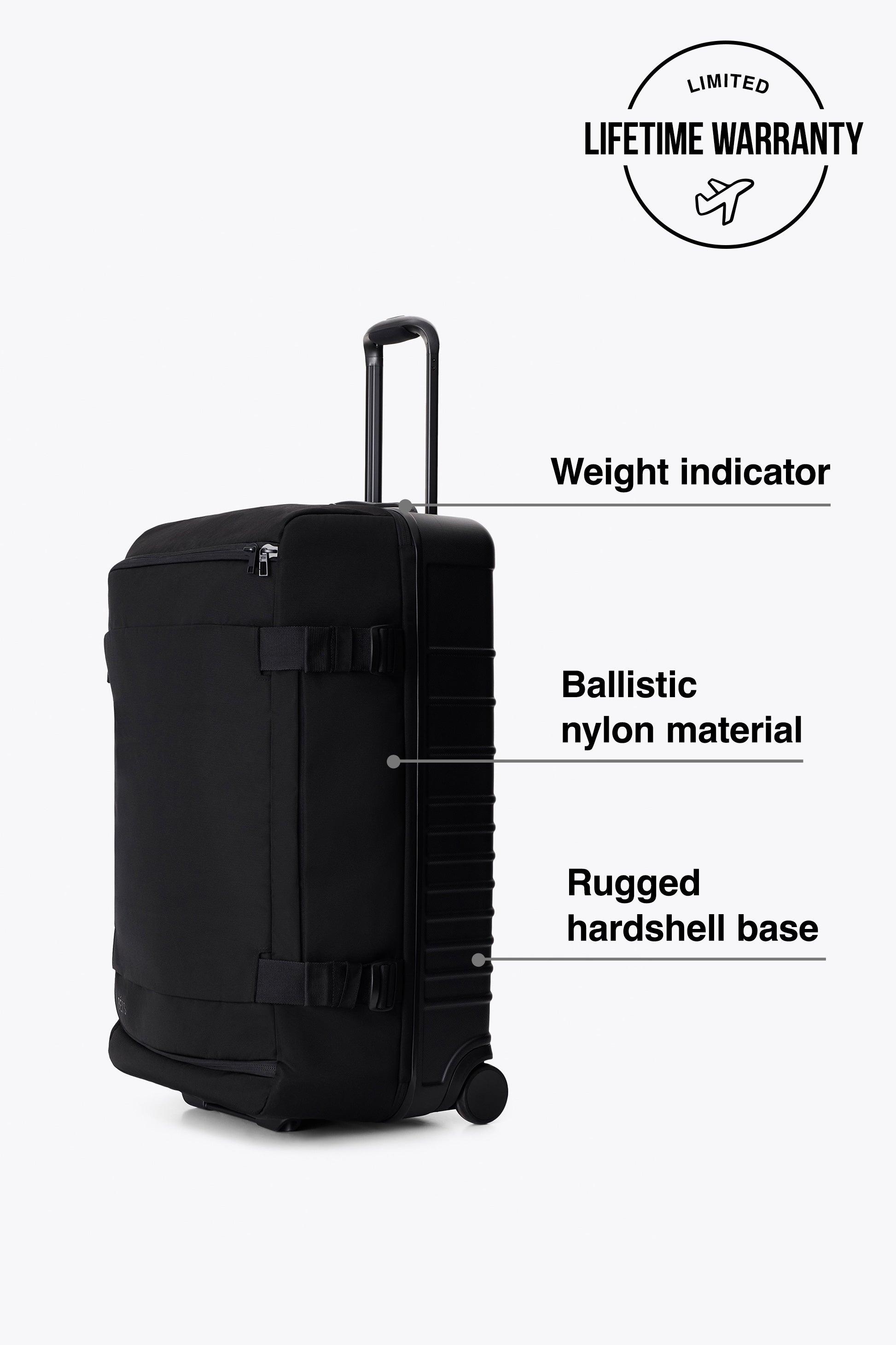 A hybrid checked bag built for how people actually pack. The Pro Rolling Duffle Check-In pairs a protective polycarbonate back shell with ultra-tough ballistic nylon up front, delivering durability, structure, and flexible storage—without the bulk.