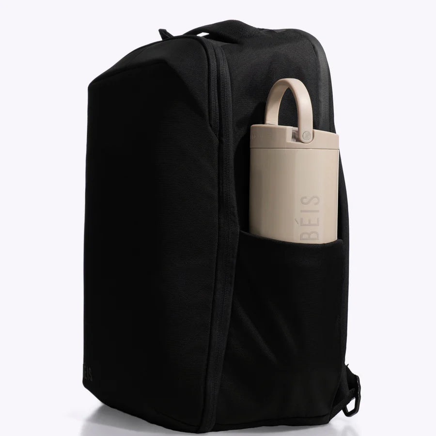 - Smart exterior access including a felt-lined top pocket, expandable water bottle pocket, and side charging pass-through