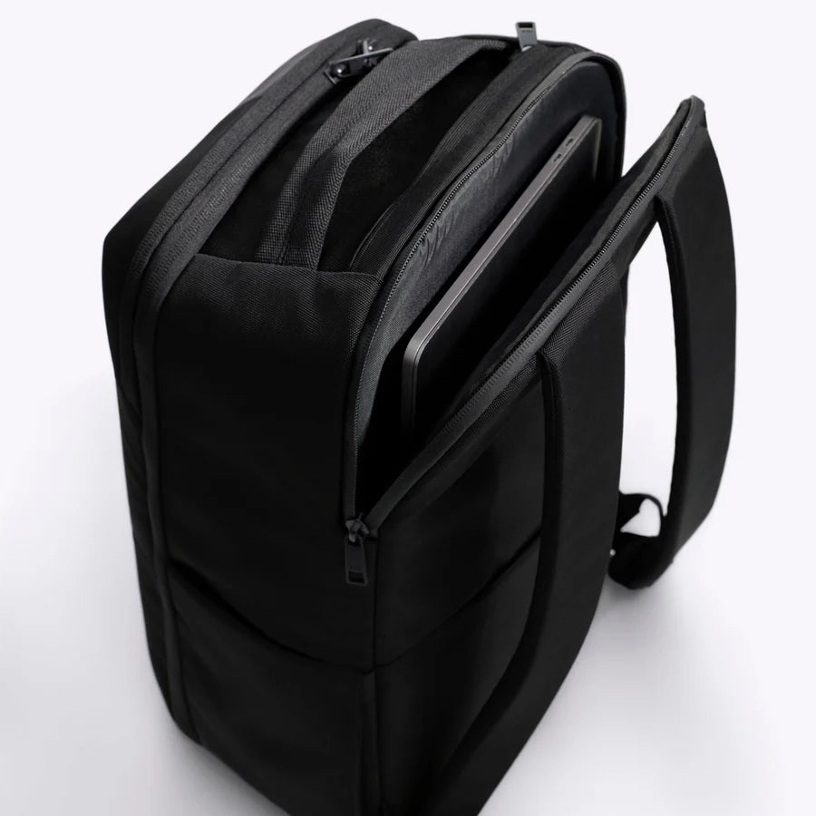 Carry it comfortably with padded, ergonomic backpack straps or stack it onto your roller using the trolley pass-through when you’re on the move. Designed to transition seamlessly from commute to airport to destination—capable enough for wild changes of plans, without looking like you packed for the wilderness.