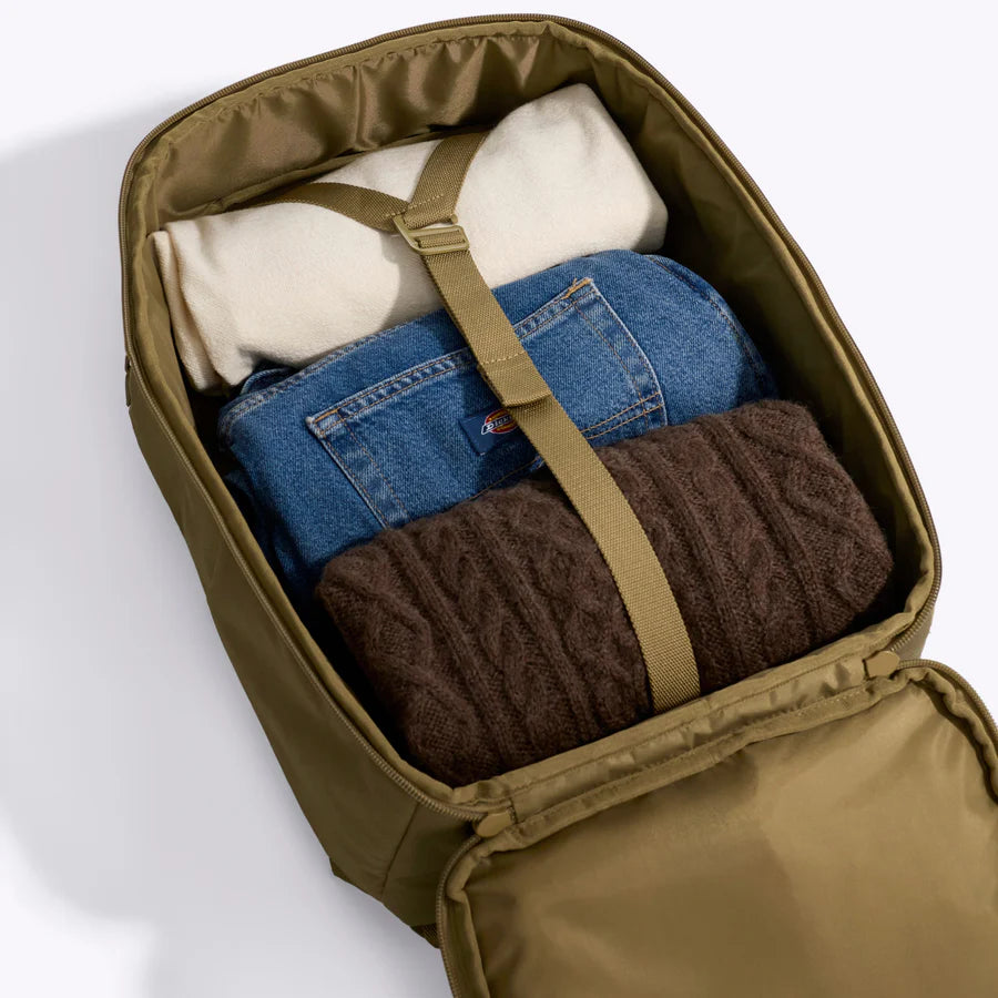 Carry it comfortably with padded, ergonomic backpack straps or stack it onto your roller using the trolley pass-through when you’re on the move. Designed to transition seamlessly from commute to airport to destination—capable enough for wild changes of plans, without looking like you packed for the wilderness.