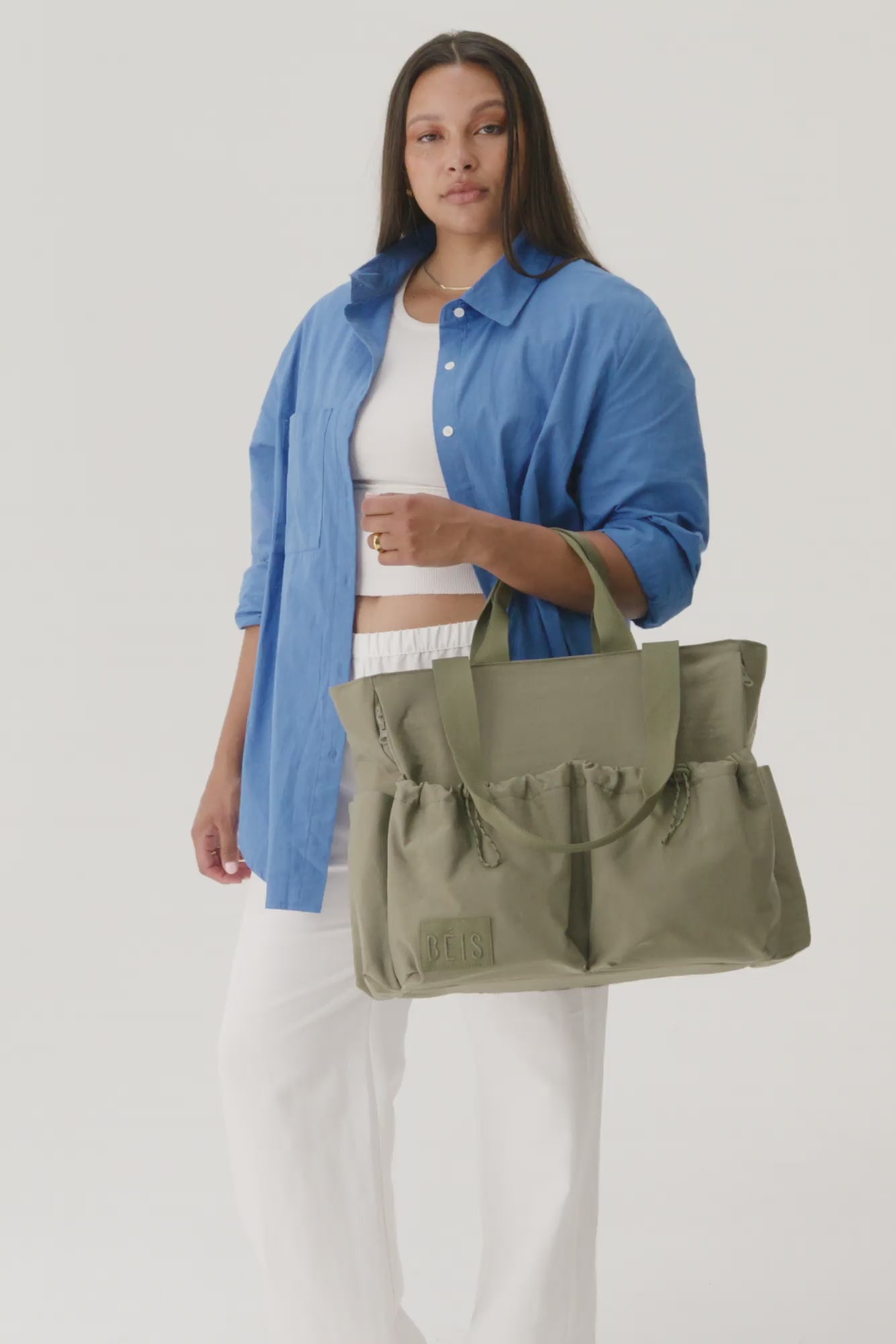 Like it's namesake, this tote can carry it all. Created specifically to take you through your day with ease, it's big enough to fit your gym essentials but chic enough to use as your all-day bag. Featuring all of your functional favs including a padded laptop sleeve, key leash, water bottle holder, and of course some extras–including a slip for your tennis racket and front pockets for weights, tennis balls, or whatever else you need for your sport of choice!