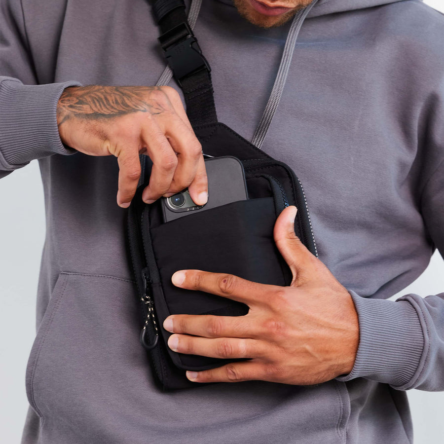 The perfect sport crossbody doesn't exi...introducing: The Sport Sling. Your new go-to for days on the move. Whether going on a hike, running errands, or hitting the town, this sling is all you need. Small but mighty, it has room for all the must-haves, including a micro-fiber lined protective pocket for your phone or sunglasses, a built-in card organizer, and even a surprise water bottle pouch! Taa-daa!
