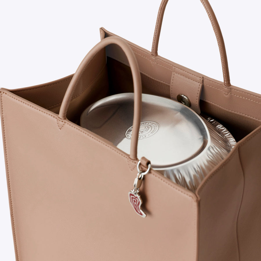 Your lunch, your style. Sized perfectly to fit a Chipotle burrito bowl (or any essentials you like to carry), this kraft-tan To-Go Bag proves packing convenience can be chic. Complete with a removable chili pepper charm, co-branded logo and lining print, a handy key leash, and a trolley passthrough for easy travel, this bag is your go-to for meals, errands, and everything in between. To-go is officially in.