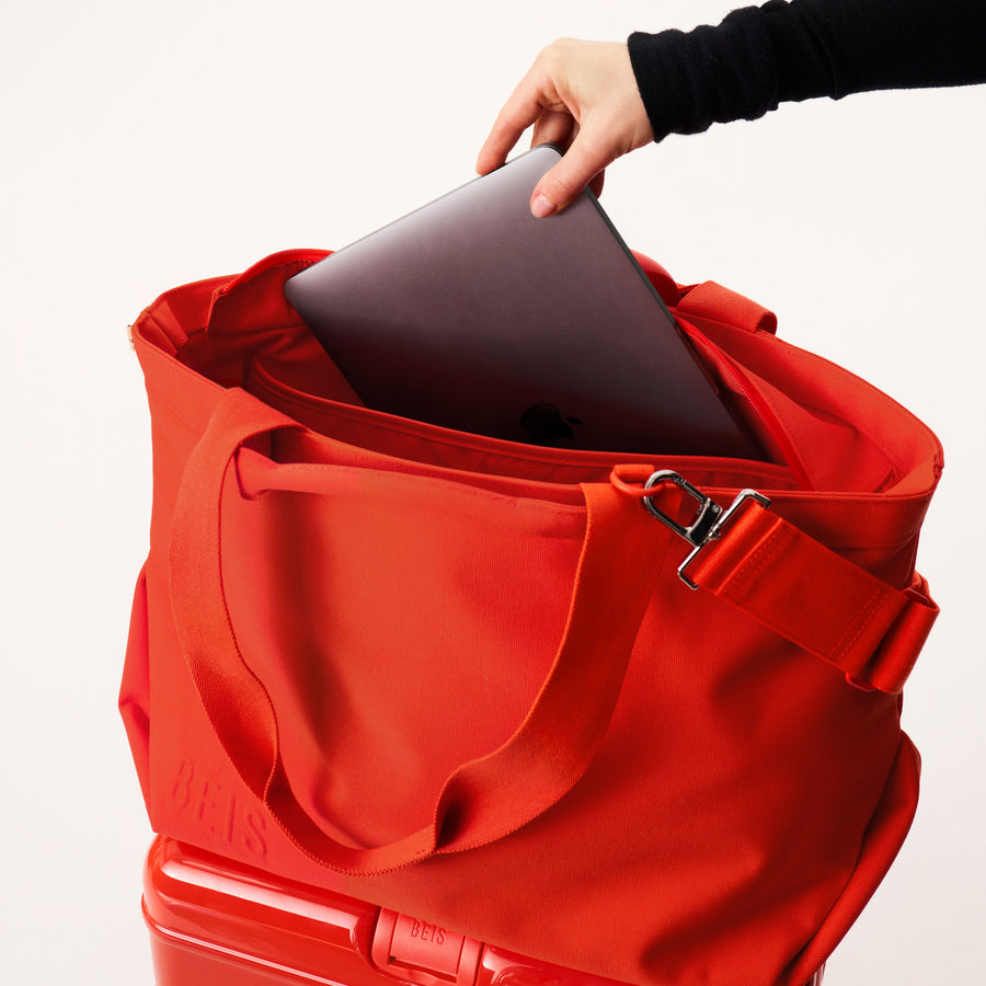 We consider this our emotional support everything bag. With three ways to carry, a trolley pass-through, and a laptop sleeve, it’s got all of the function you need for travel, farmer’s market runs… or sneaking over to your situationship’s place. Plus, it has a water bottle pocket inside + details sprinkled throughout. Stylish enough for any occasion, big enough for all your essentials (and your denial about how much you actually need to carry).