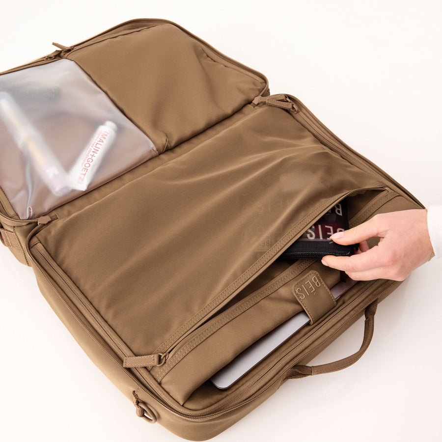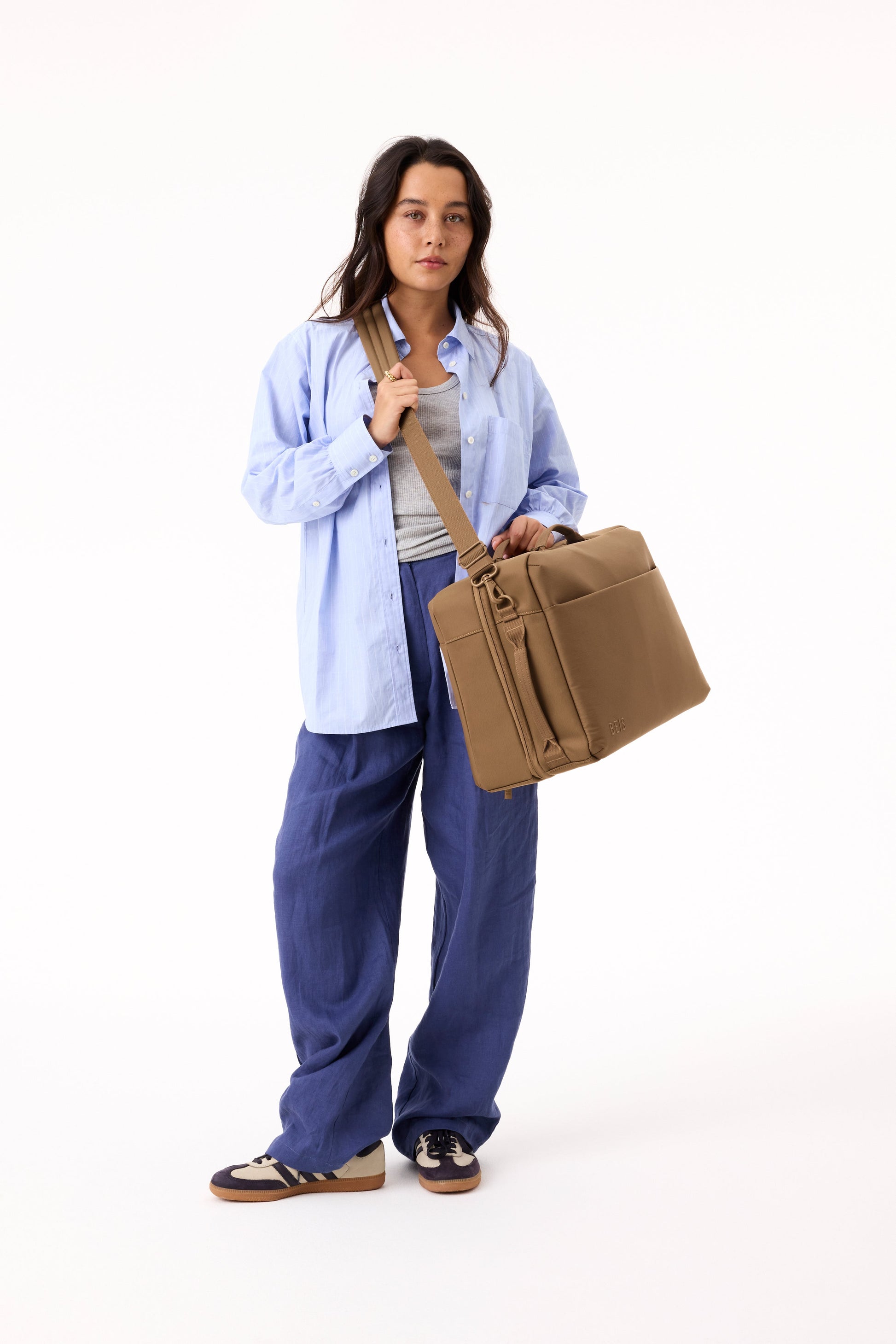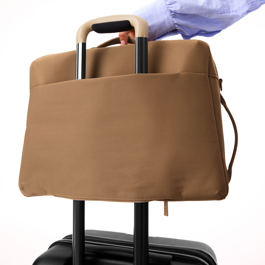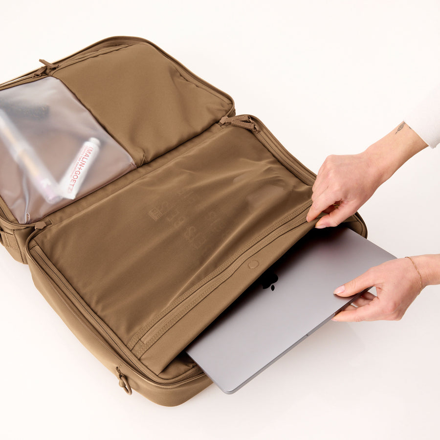 A sleek personal item with the packing power of a checked bag, this innovative duffle opens flat like a suitcase for effortless organization. Spacious enough for all your essentials yet compact enough to fit under your seat, it features a padded laptop compartment, webbing handles, and a removable crossbody strap. The ultimate blend of style and convenience has landed.